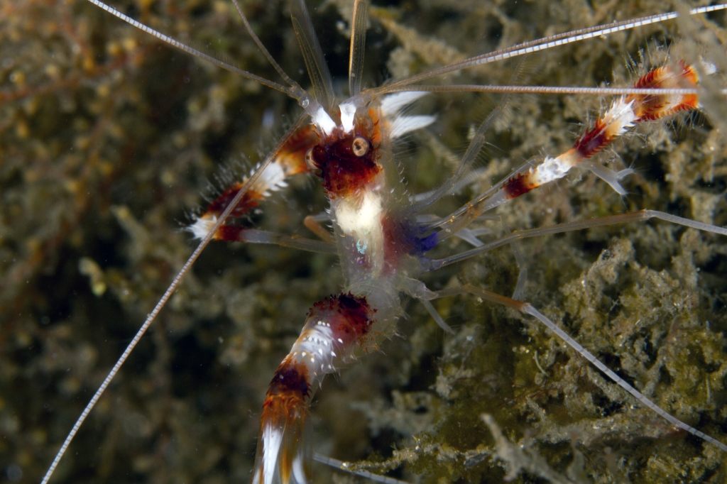 There were many banded coral shrimp roaming around.