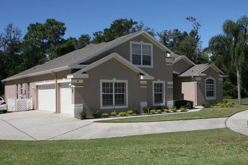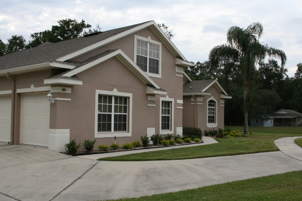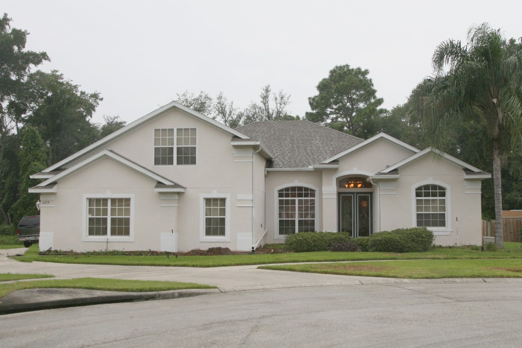 2 Here's the 'before' photo of the house showing what it looked like after we dug out the overgrown ligustrum hedges across the front of the house. Also note that there is no decorative border around the bonus room windows above the garage.
