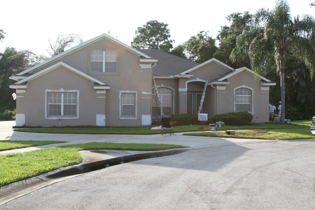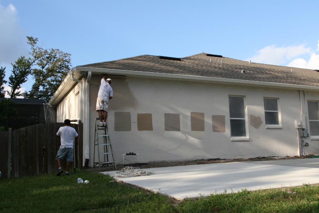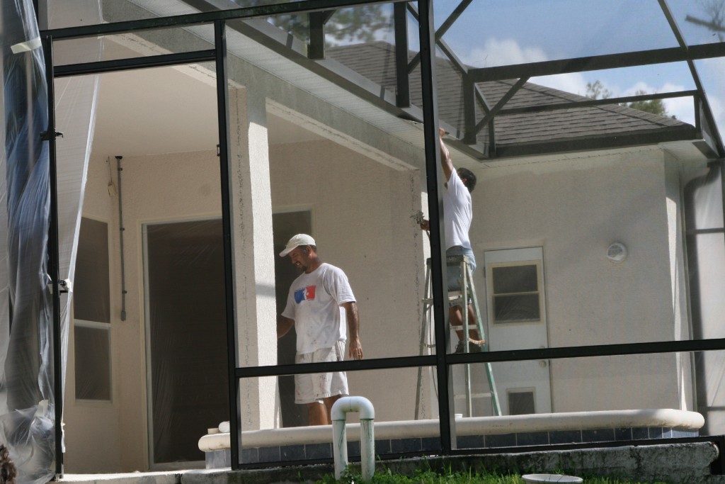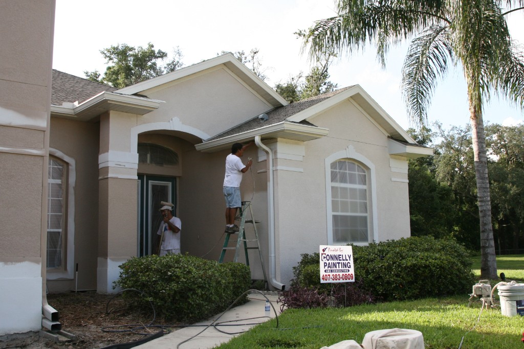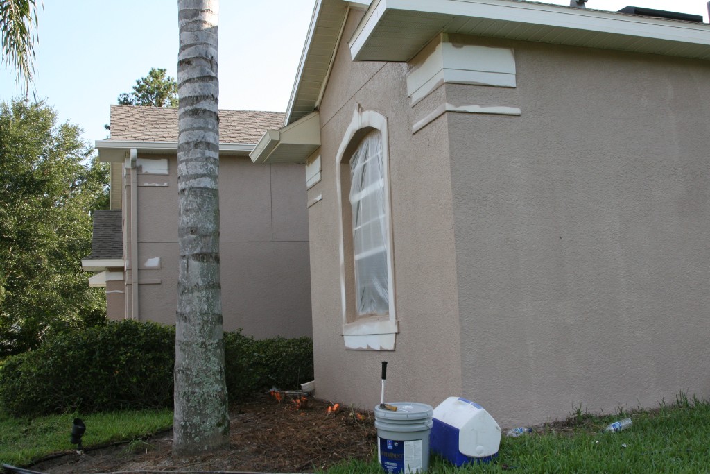 4 Day 1. The painters from Connelly Painting (Oveido FL, highly recommended) began sealing the windows/doors/etc in preparation to applying the seal coat.