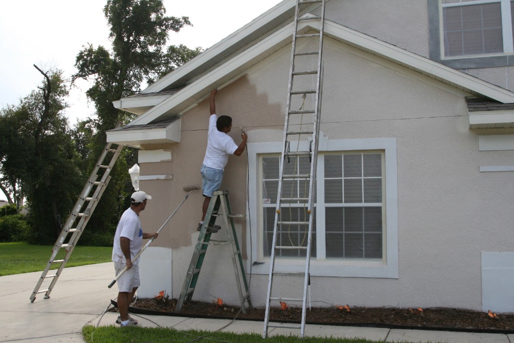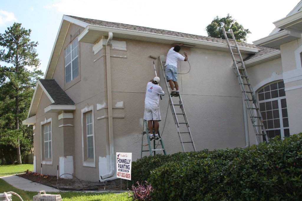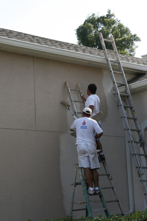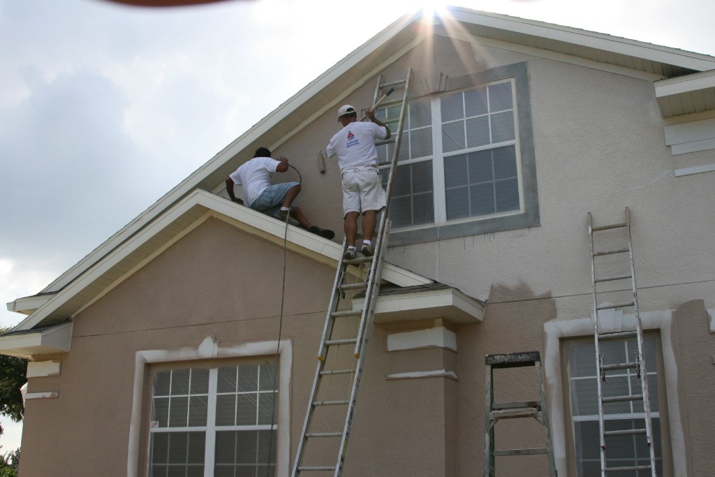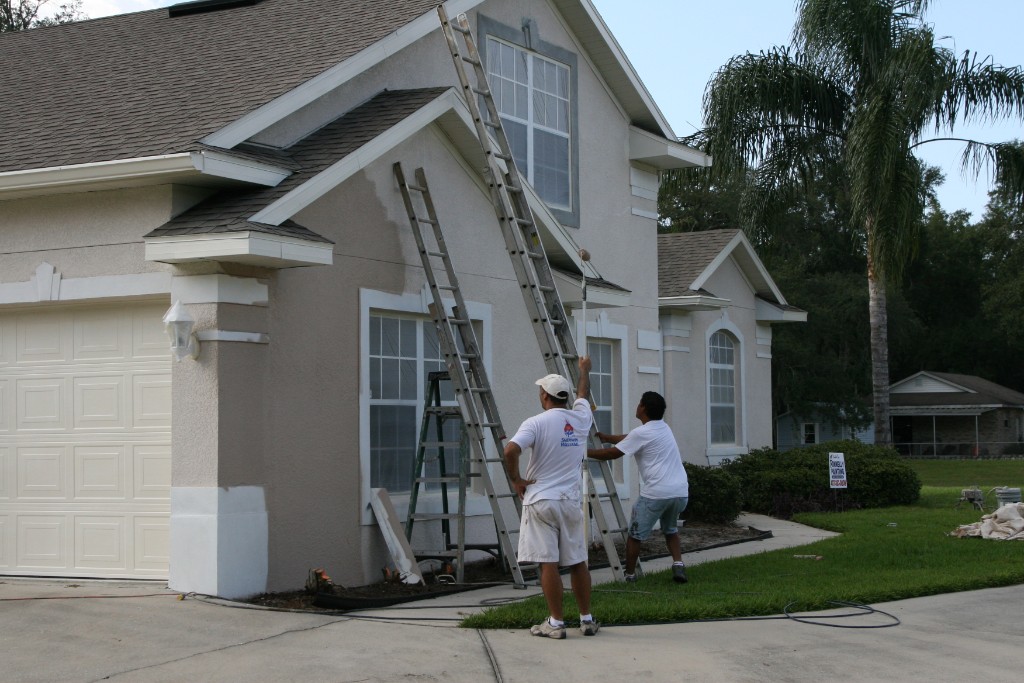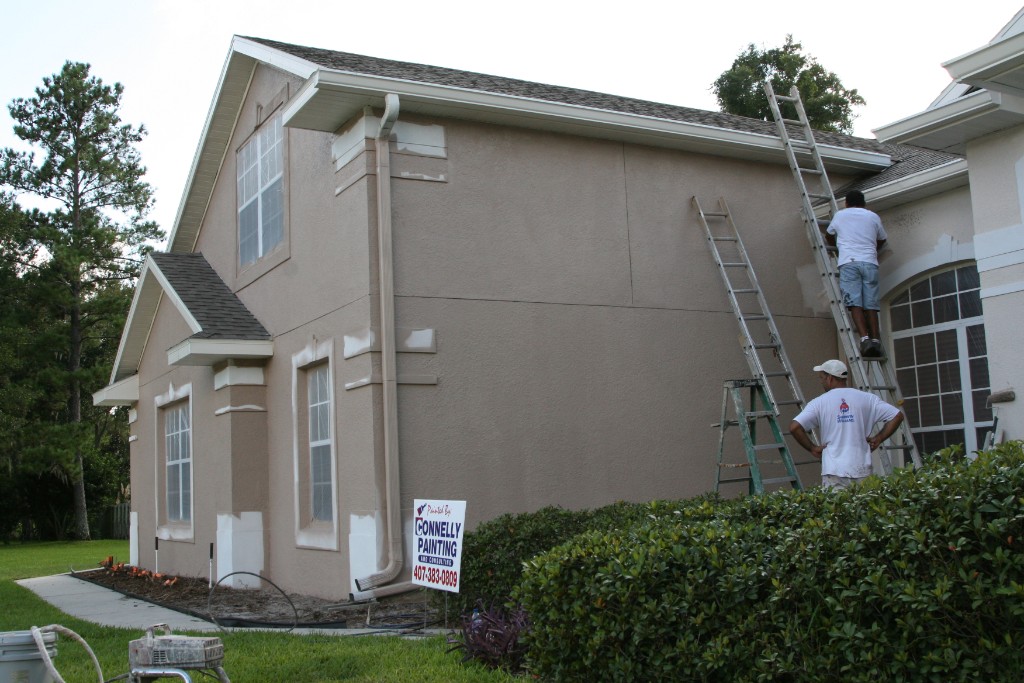4 Day 1. The painters from Connelly Painting (Oveido FL, highly recommended) began sealing the windows/doors/etc in preparation to applying the seal coat.