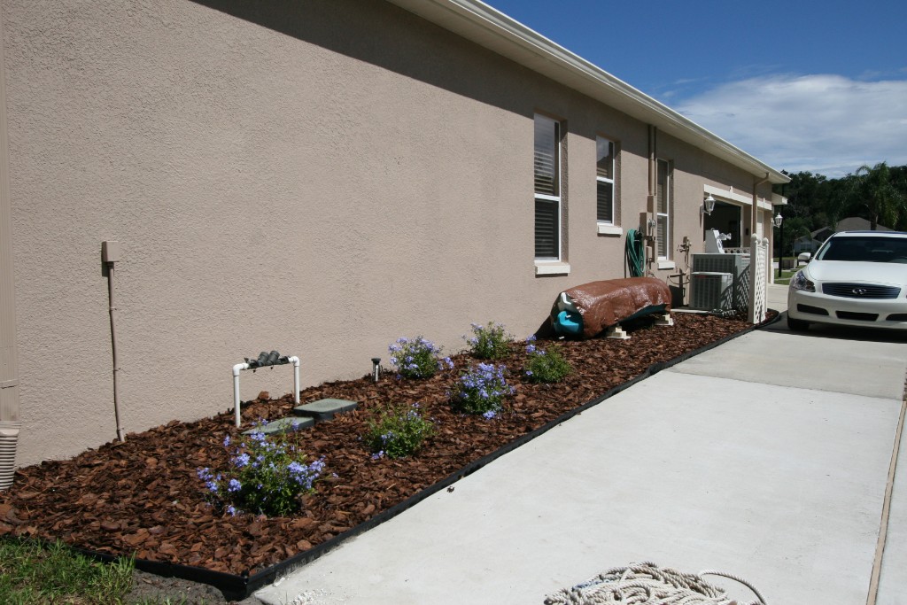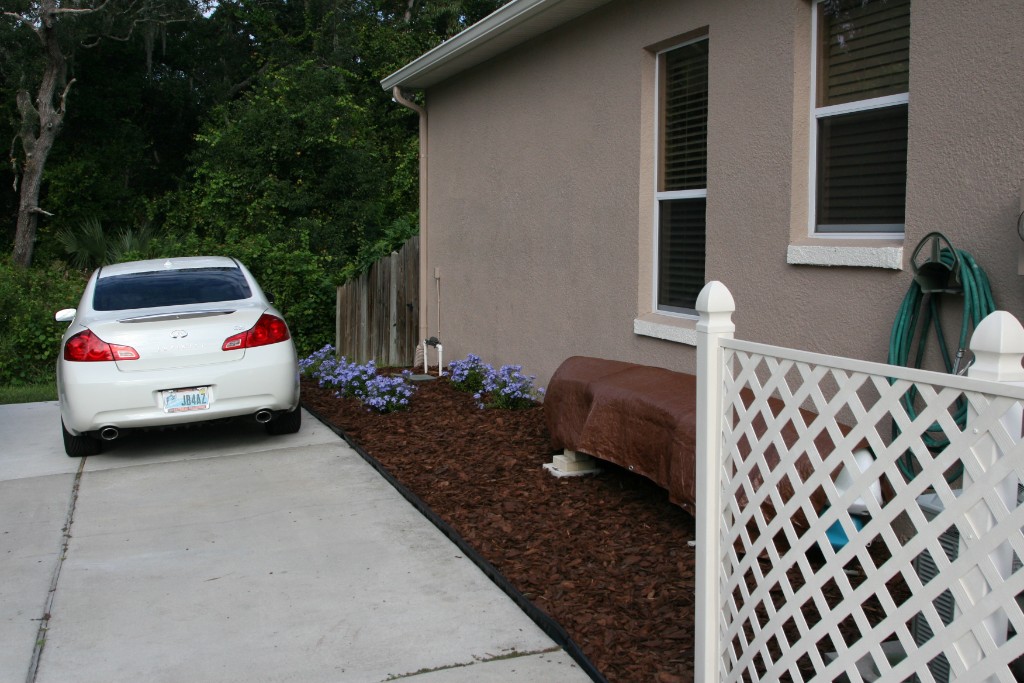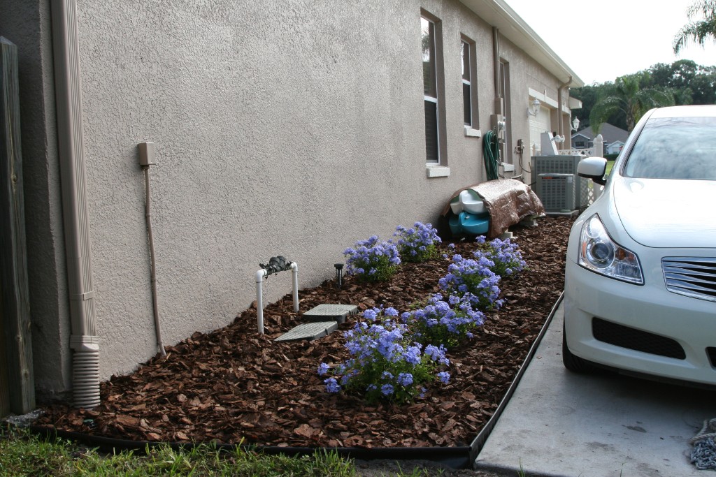 31 As a part of extending the driveway and having the house painted, I also took out the strip of lawn between the house and the driveway and planted some Plumbagos and mulched.