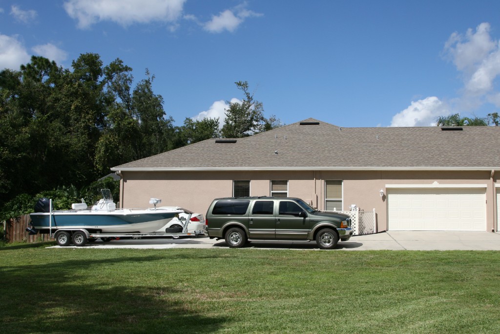 34 With the driveway extension I can leave the boat trailer hooked up to the Excursion and not block the garage.